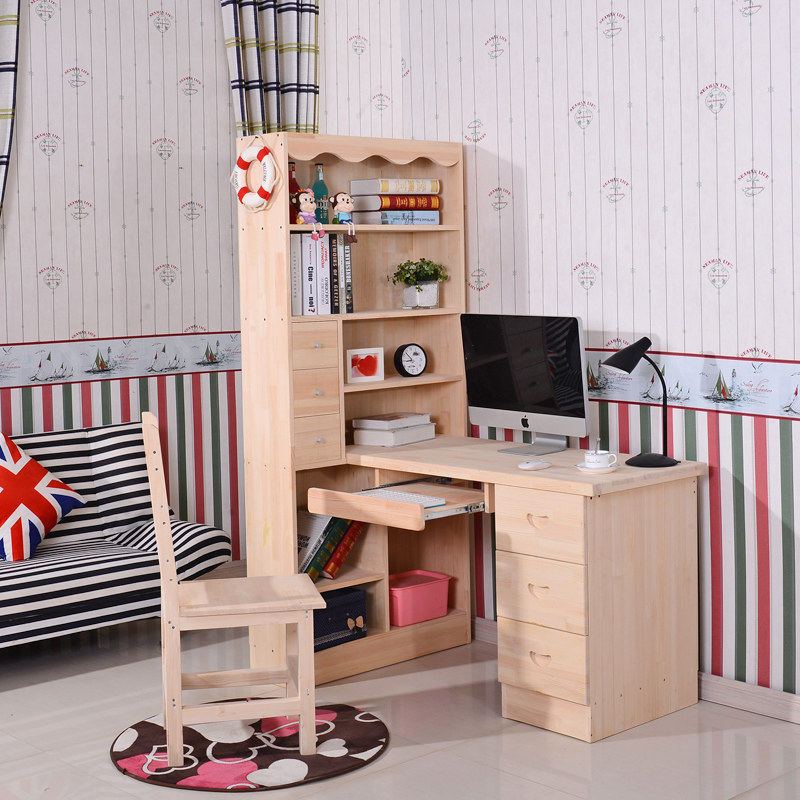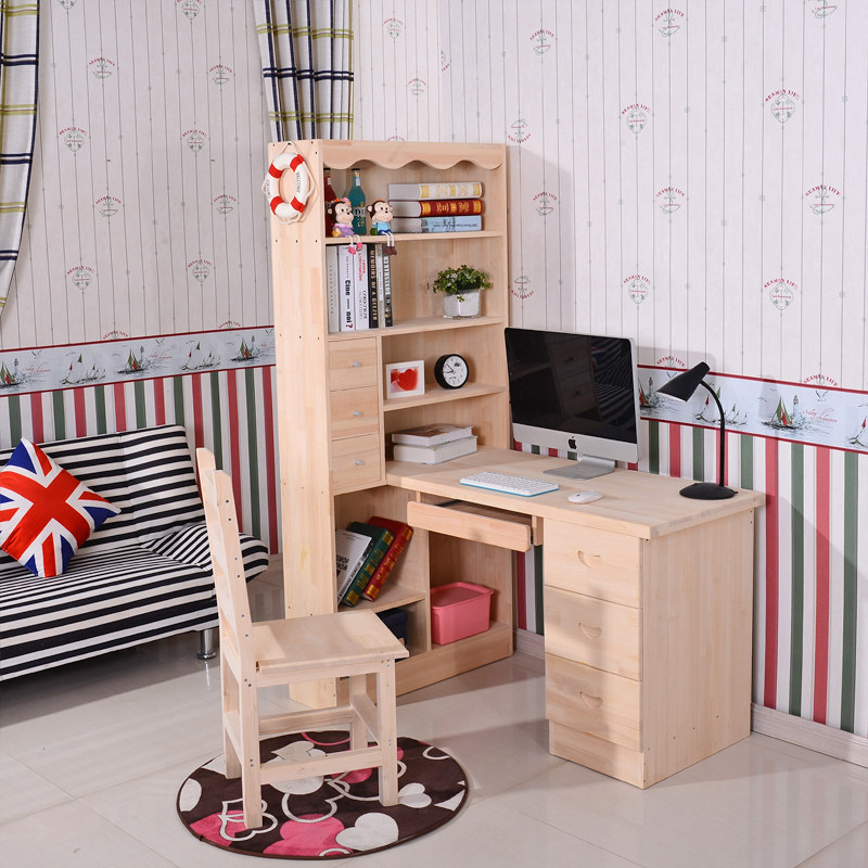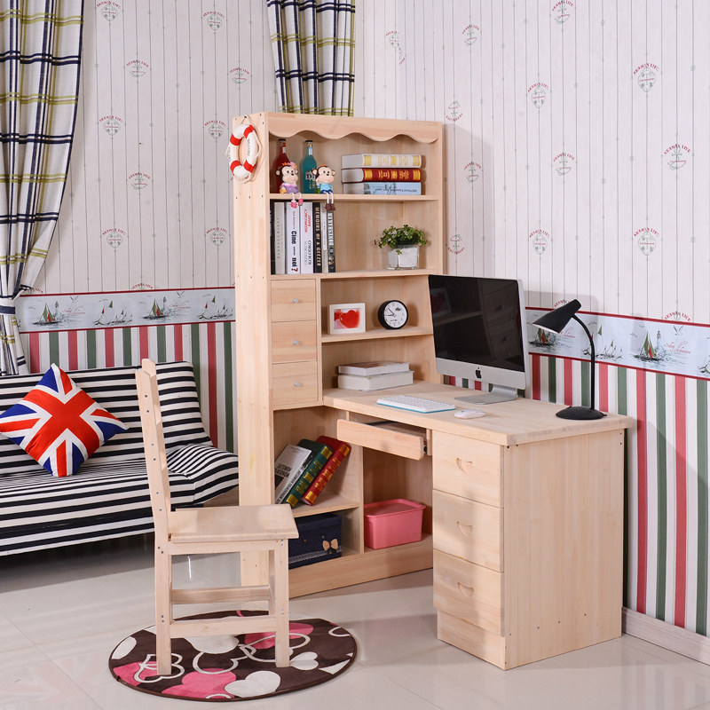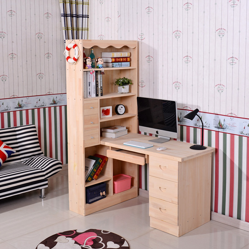 Solid wood desk corner computer desk desktop pine desk bookcase combination simple children's study table with bookshelf table
