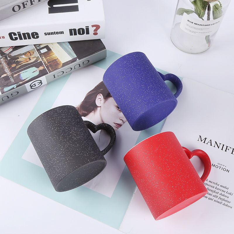Heat transfer ceramic wholesale color change cup coating impression of cup Mark cup heart shape stars air color change cup
