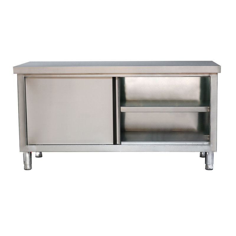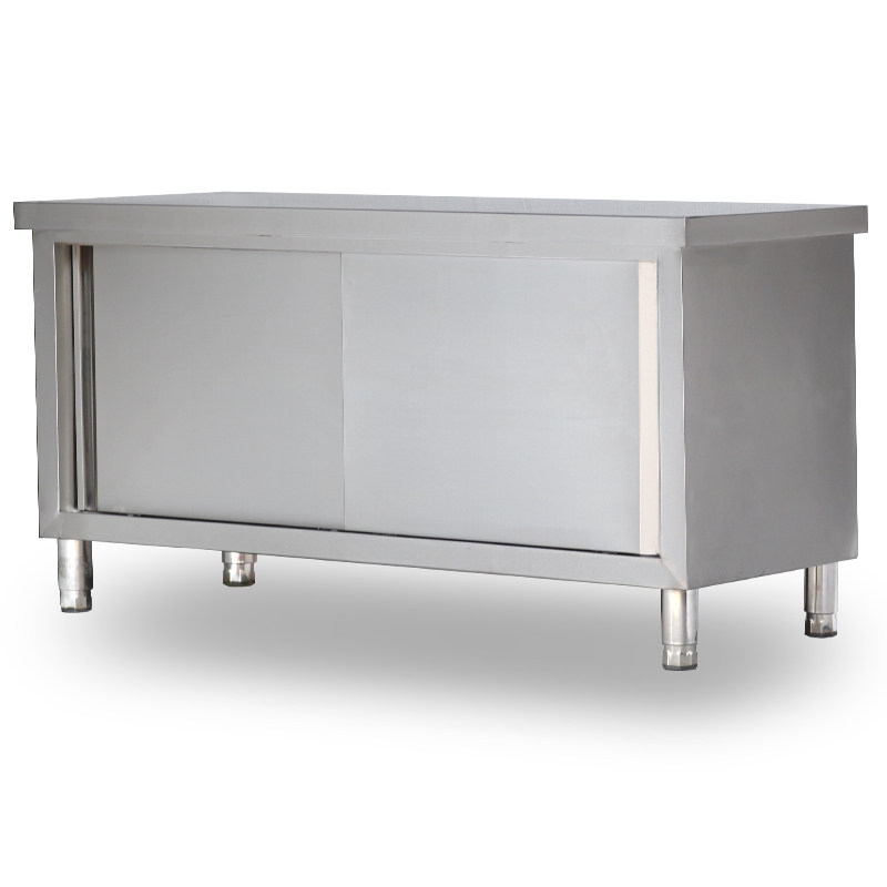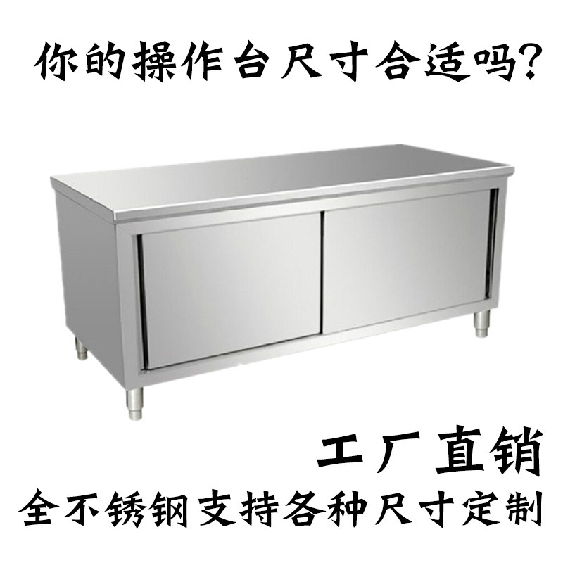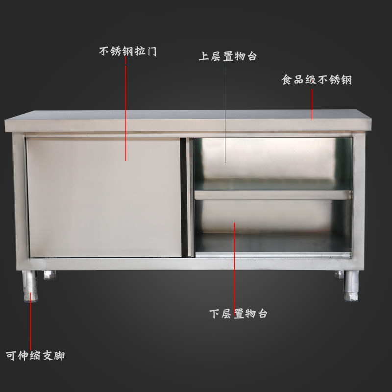 Pufeng kitchen thickened stainless steel workbench hamburger shop equipment double single sliding door console with lotus table bag