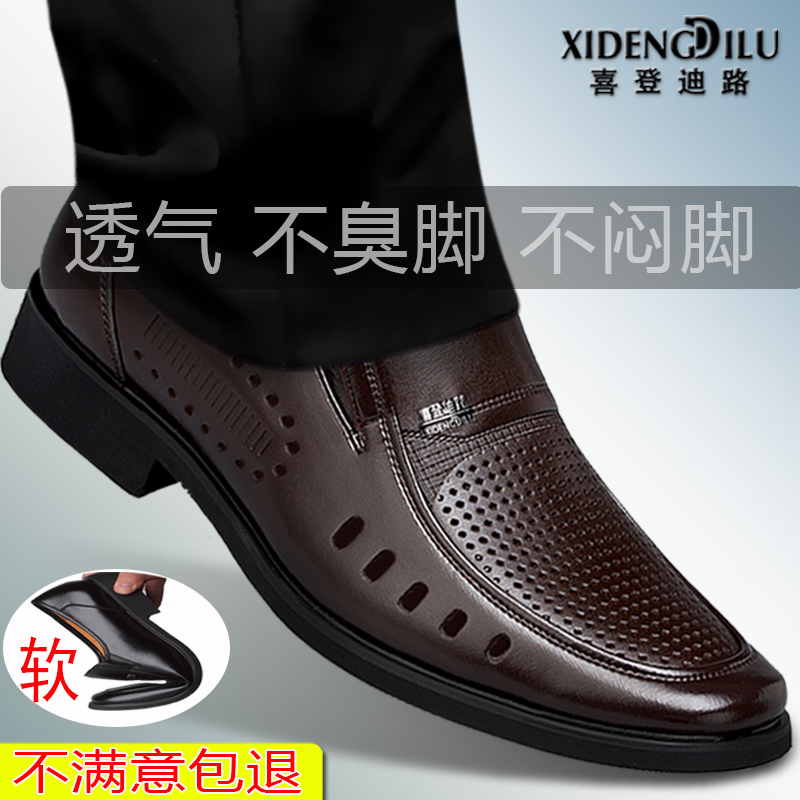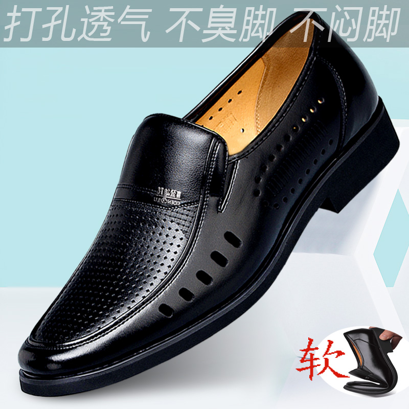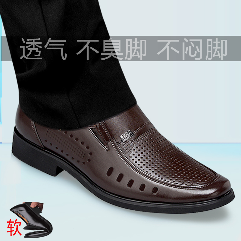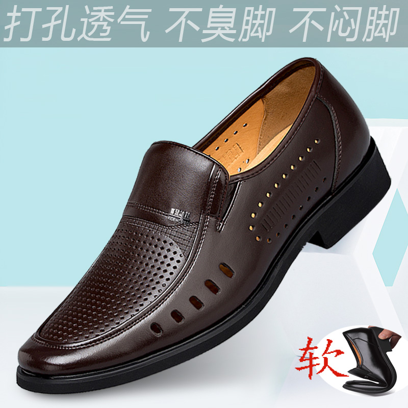 Summer hollow breathable men's sandals business formal dress round toe punched leather sandals middle-aged and elderly dad shoes