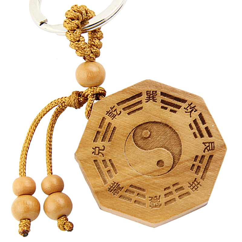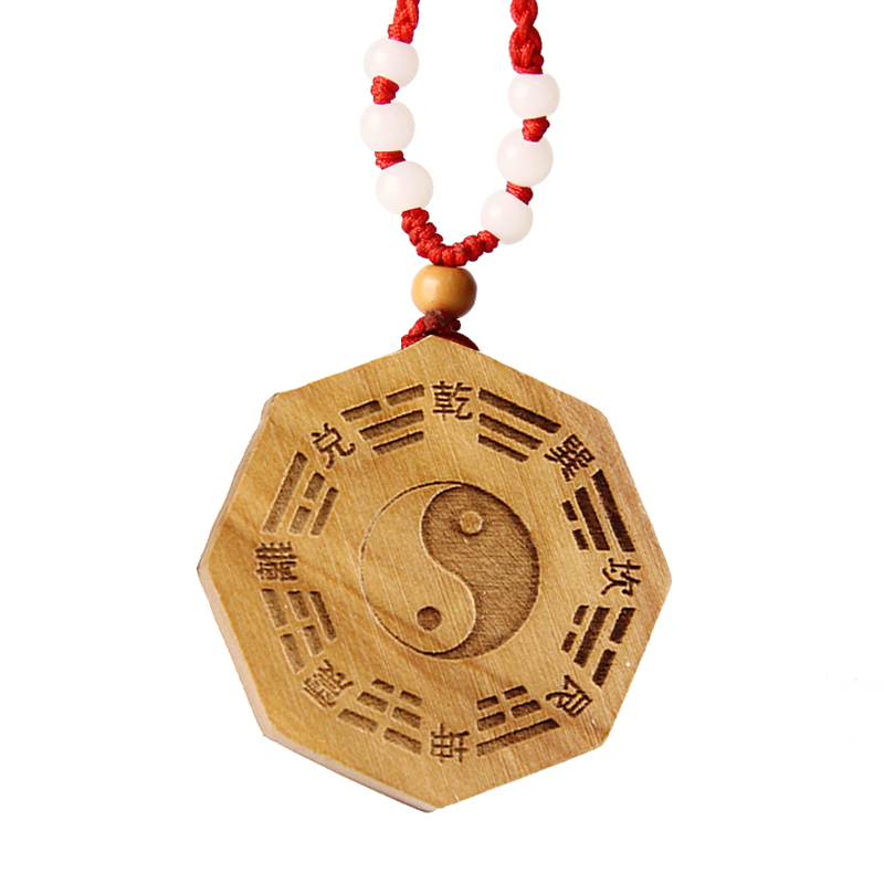 Peach wood carving Tai Chi gossip mirror Necklace pendant pendant jewelry Men's and women's five elements evil mascot