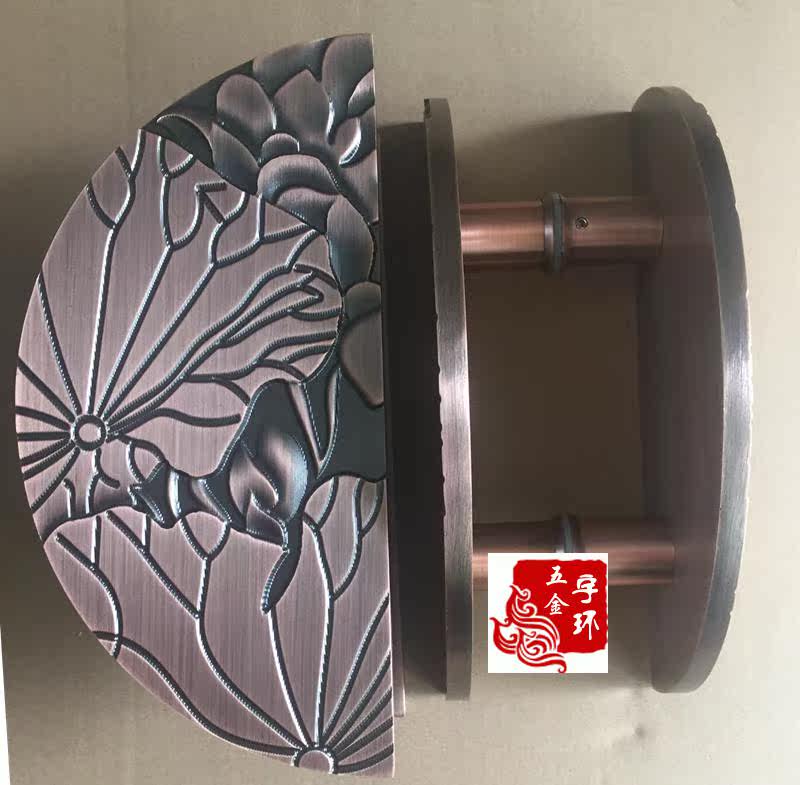 Chinese antique lotus door pull handicraft handle hotel club glass door antique copper handle European style