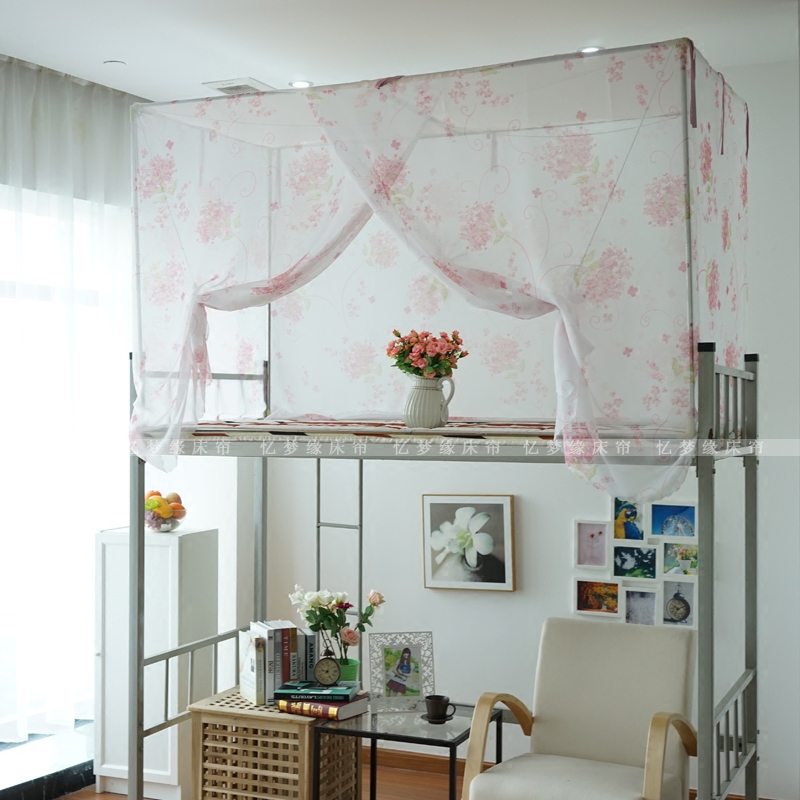 Square top student anti-dust top mosquito nets encrypted yarn curtain Sleeping Room Dorm Room up and down Printed Bed Mantle Special Price