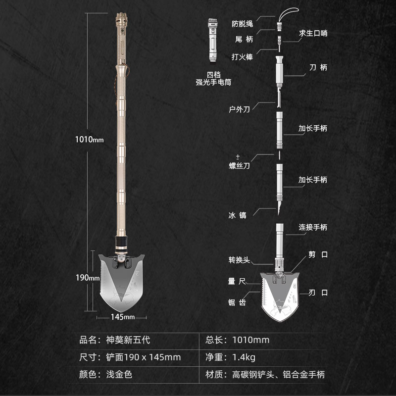 God Mastiff Tibetan mastiff shovel Outdoor multi-purpose sapper shovel German military version folding military stacker airborne military shovel iron rowan
