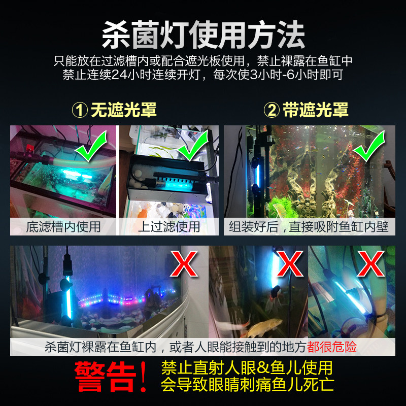 Fish tank sterilization lamp uv lamp diving built-in fish tank ultraviolet disinfection lamp waterproof algae removal fish pond water purification sterilization lamp