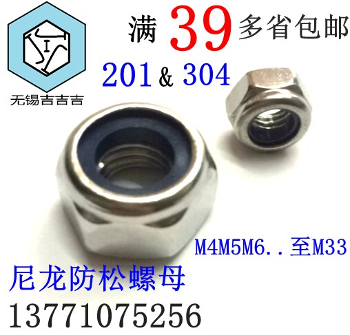 304 stainless steel anti-loose nuts 316 self-lock anti-slip 201 nylon locking 3M4M5M6M8M10M12M14M20