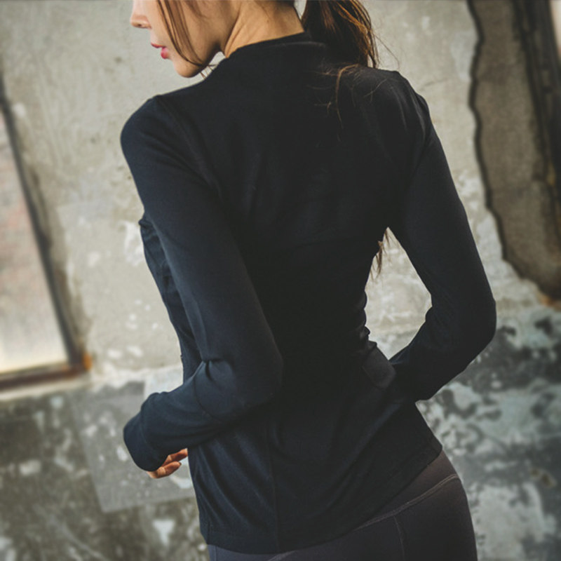 Fitness girl slim top Yoga suit Long sleeve stand collar women's sports tight zipper cardigan coat jacket T-shirt