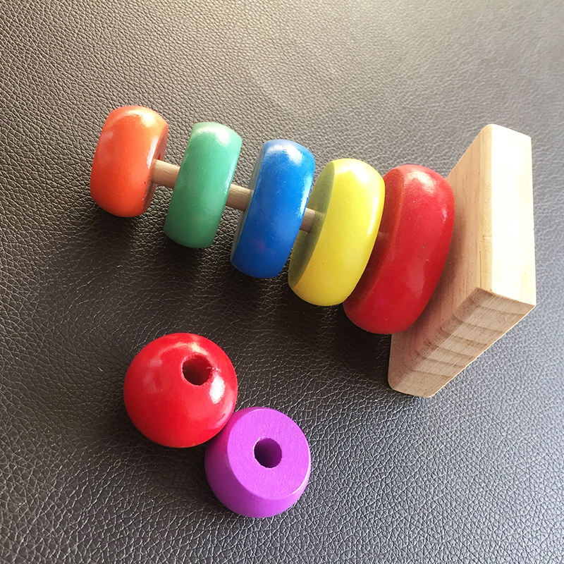 Tower wooden baby rainbow sleeve tower folded with stacking high color cognitive sleeve cognitive wood block children's toy