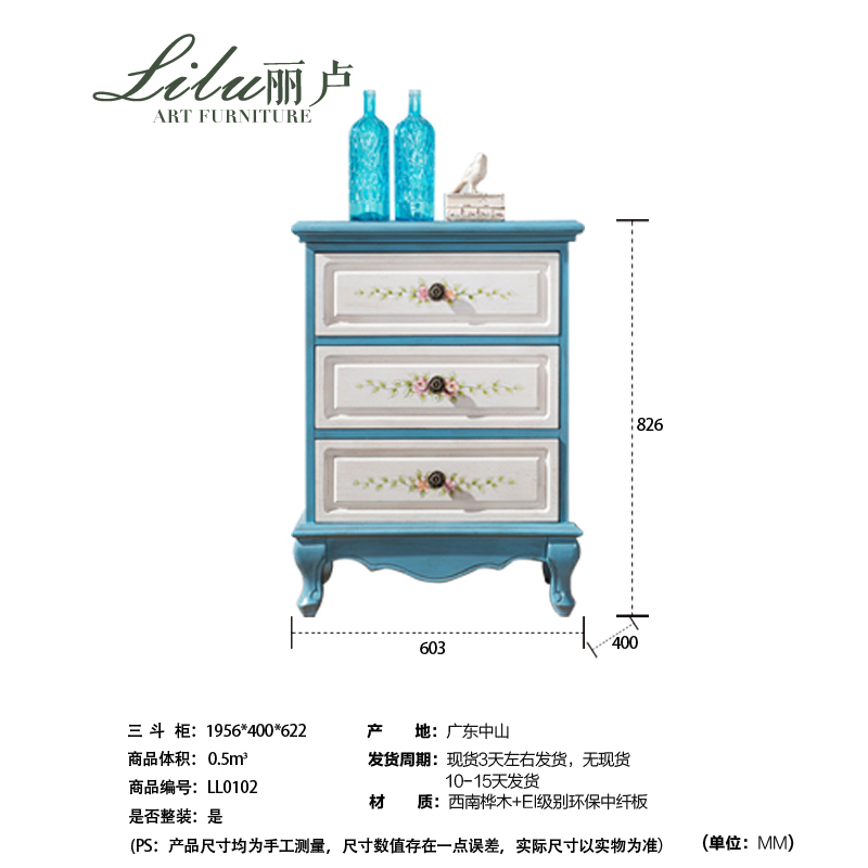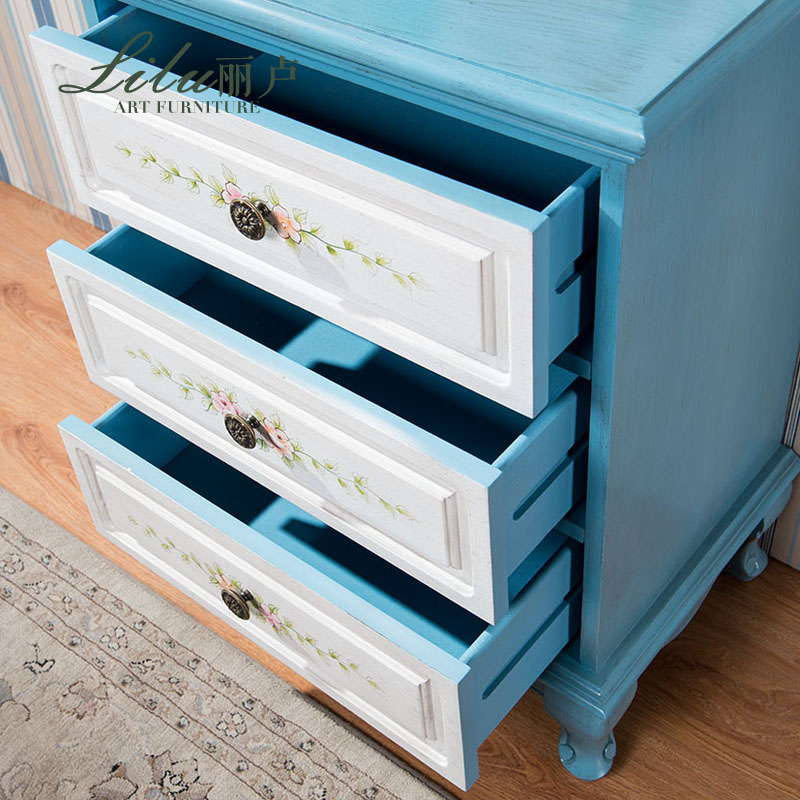 Lilu American three-bucket cabinet Mediterranean simple combination furniture to make old painted bedroom solid wood drawer storage cabinet