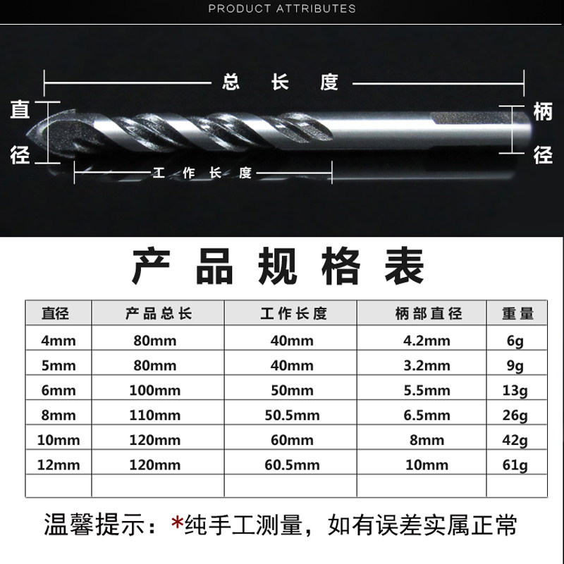 Lengthened woodworking ceramic reaming drilling tile drilling machine cement wall drilling mixed earth glass drill triangular drill