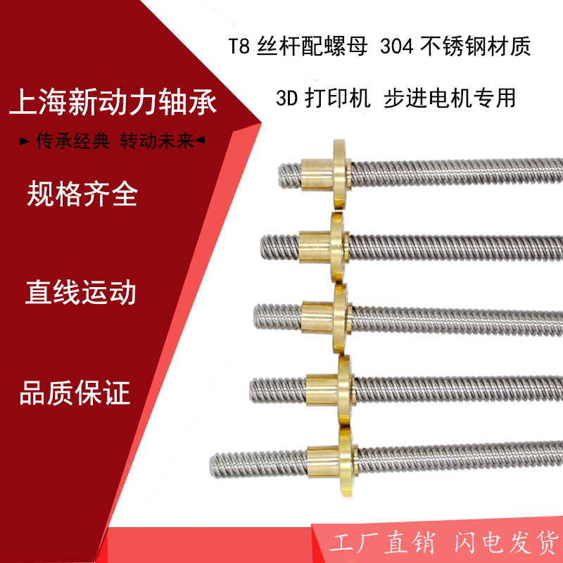 304 stainless steel T-type screw T8 screw stepper motor 3D printer lead screw 300 400mm long with nut