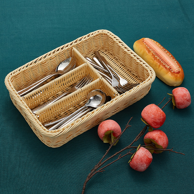 Image knit rectangular tableware four grid knife and fork basket collection box asphalt basket chopsticks fragmentation basket creative collection basket