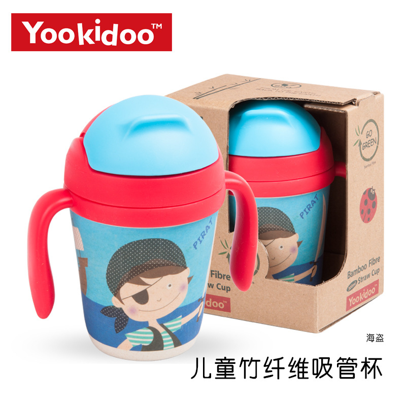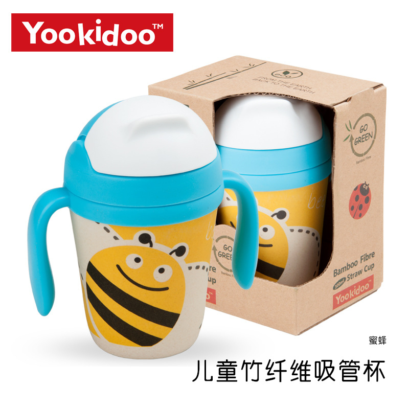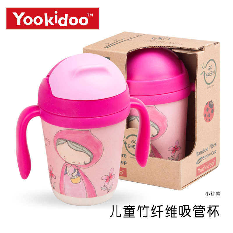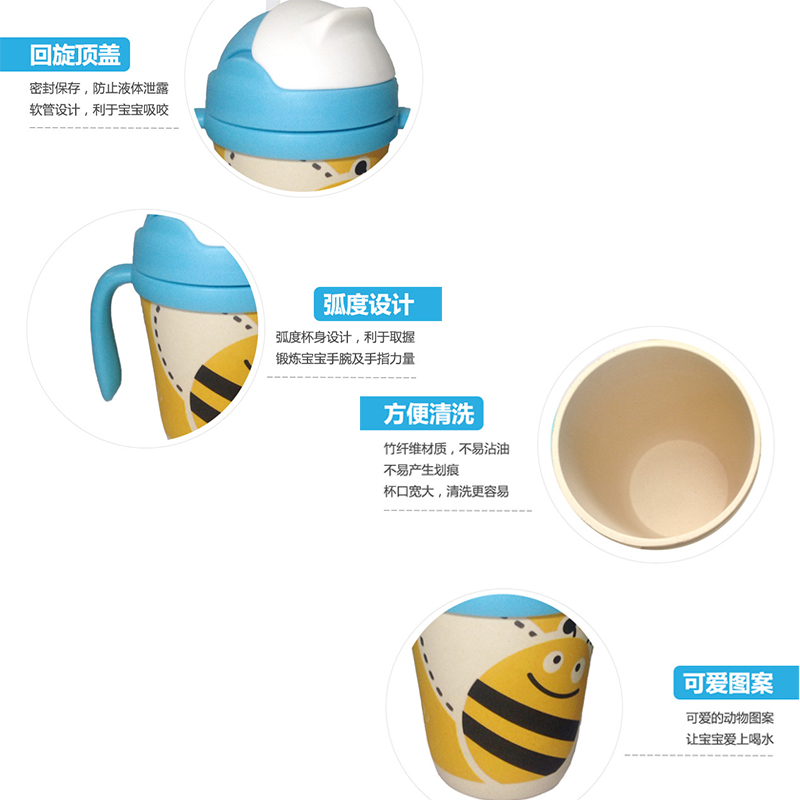Children's bamboo fiber cartoon water cup baby sippy cup baby leak-proof drinking cup baby with handle training cup