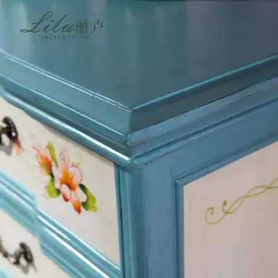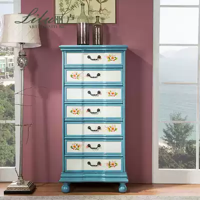 Lilu Mediterranean painted old solid wood seven-drawer cabinet American simple storage cabinet storage cabinet Bedroom drawer cabinet