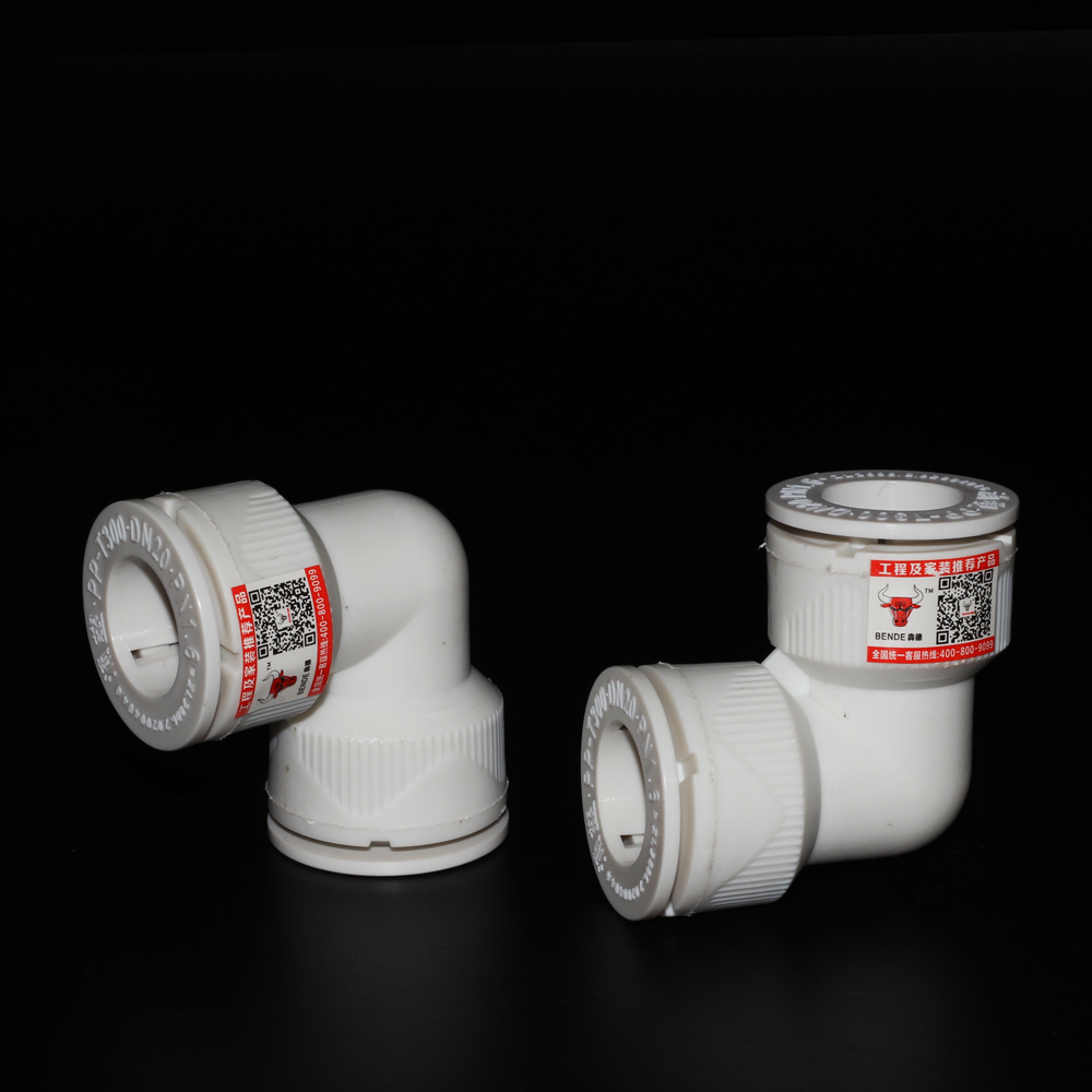 Large-diameter elbow aluminum plastic pipe PPR PVC PE heating pipe fast and quick-insert quick-fit elbow with equal diameter elbow