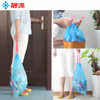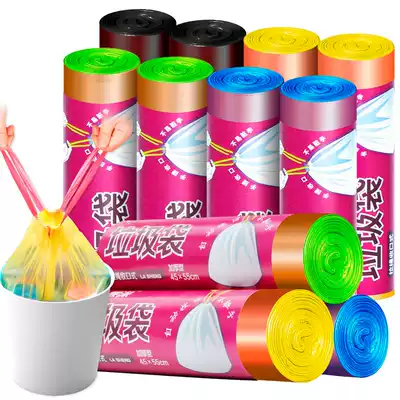 Beautiful polyester 8 rolls automatic closing garbage bag thickened portable household drawstring kitchen plastic bag medium and large