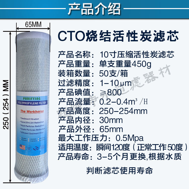 10 inch flat mouth 3rd level Precision sintered CTO compressed active carbon filter core water purifier filter core