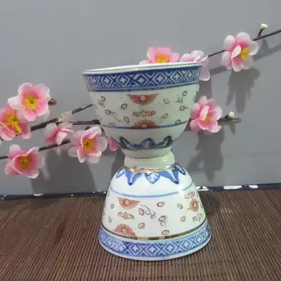 Jingdezhen Cultural Revolution Factory goods porcelain blue and white Linglong plus color two-cylinder Cup old tea cup Cultural Revolution collection bag old