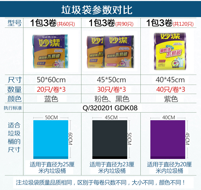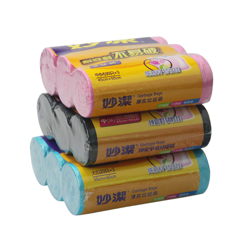 Miaojie thickened point broken flat bottom garbage bag kitchen household disposable plastic bag 3 rolls