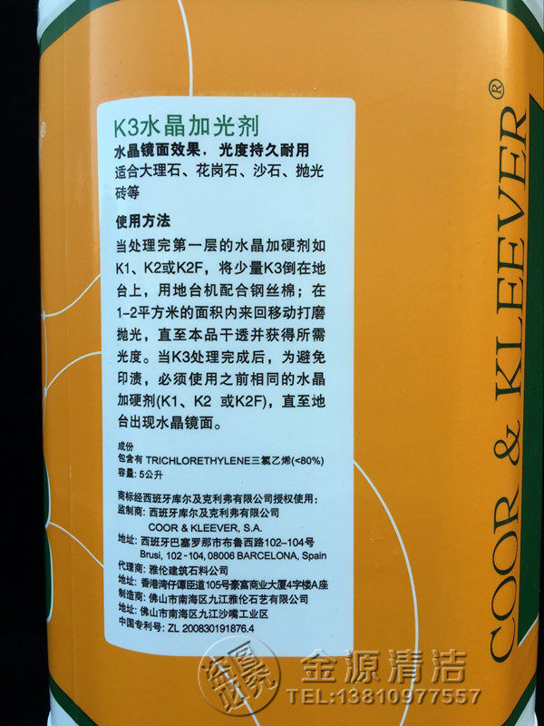 Spain imported K2 K3 crystal hardening agent marble crystal surface treatment agent lighting liquid brightener