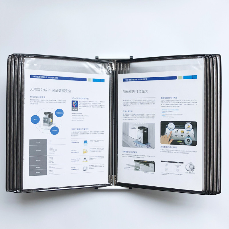 A4 display page shaft Wall-mounted folder Wall flip information bag display rack Hanging file rack 10 pages