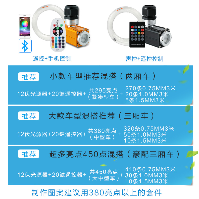 2m kit(small 260 fiber optic machine) 3m kit (small 295 fiber optic machine)Small model mix and match 3m long 295 highlights Large model mix and match 3m long 380 highlights More than 45