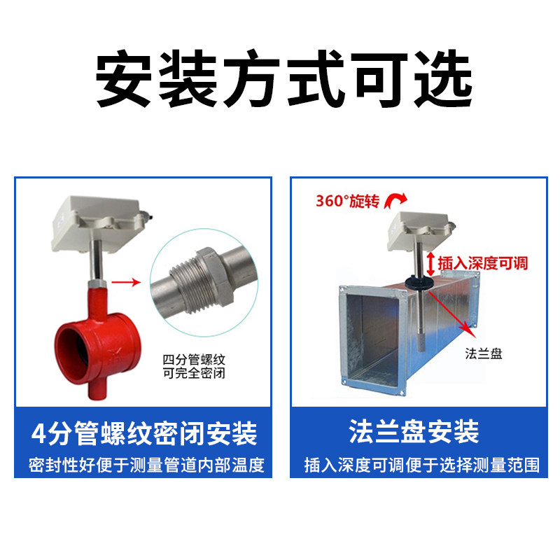 Pipe temperature and humidity sensor Duct temperature and humidity transmitter rs485 flange glow tube display transmitter