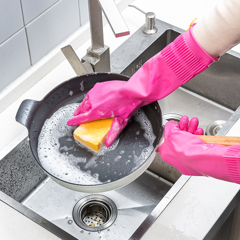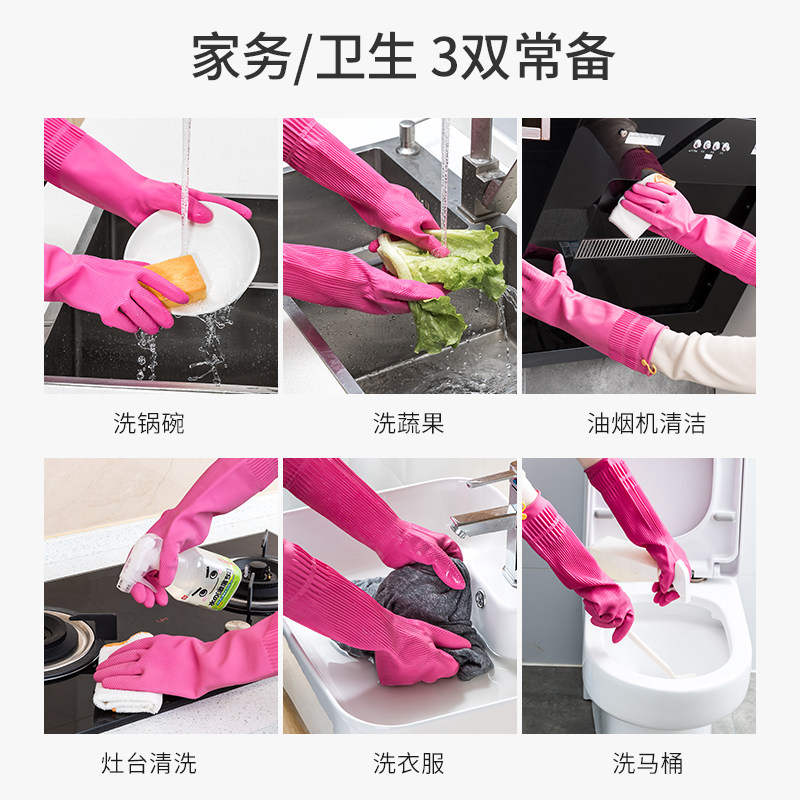 South Korea imported winter kitchen dishwashing gloves household extended durable laundry housework rubber gloves thick section