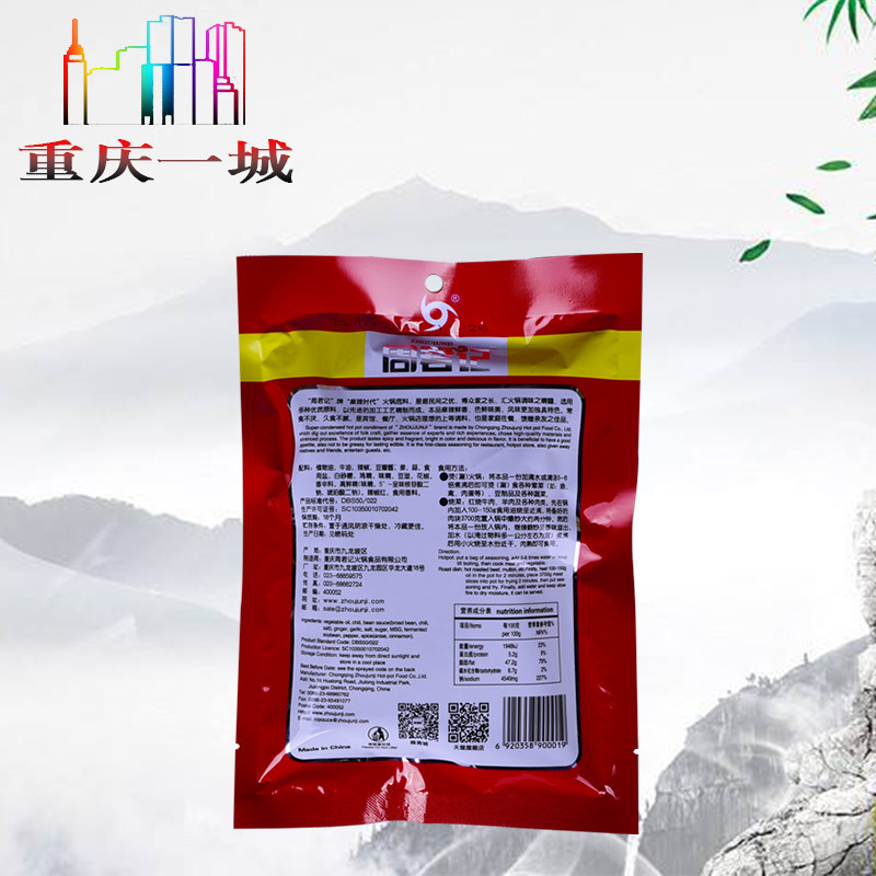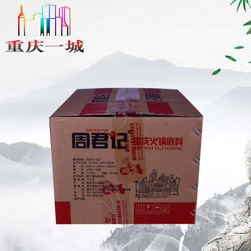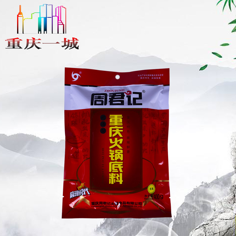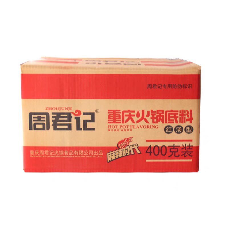 Chongqing Special Produce Zhou Jun Kee Red Broth Spicy Ox Oil Hot Pot Soup Bottom 400g Whole Box 30 Bagged