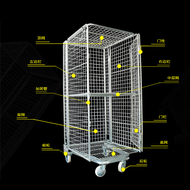 Folding galvanized U-shaped logistics trolley Mesh logistics car Supermarket management truck can take the door E-commerce express express basket