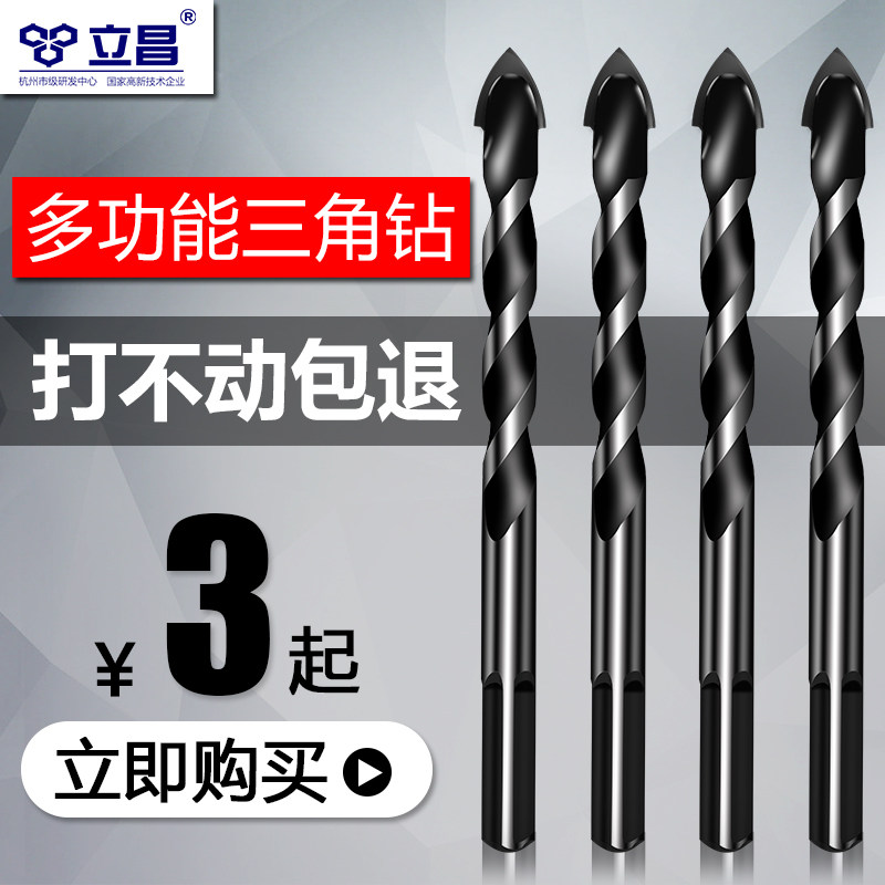 Tile drill bit 6mm super hard alloy drilling triangle drill bit All-ceramic concrete brick wall special flashlight drill bit