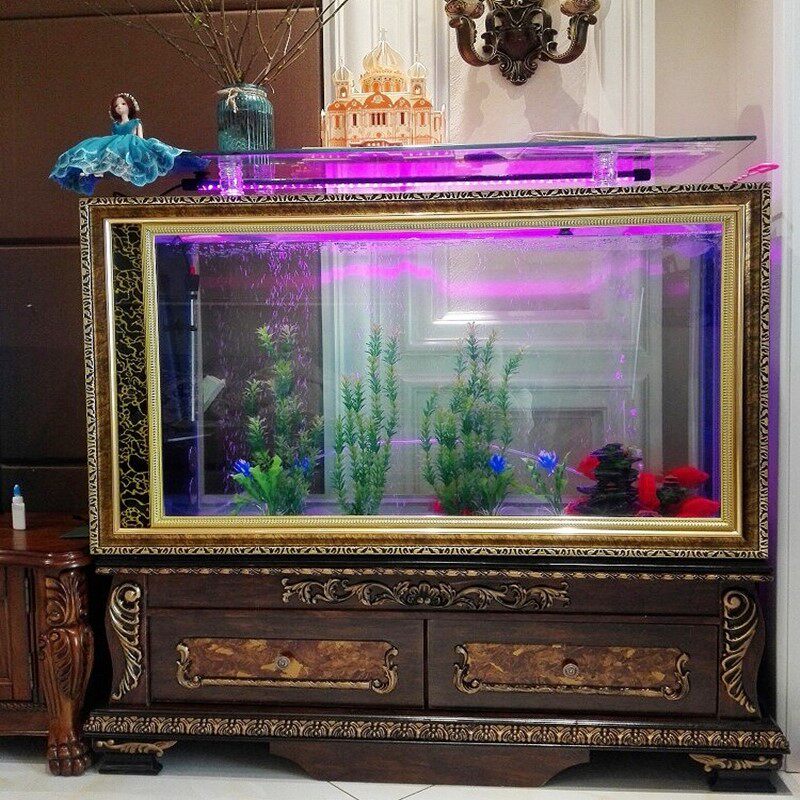 Mahogany color large and medium-sized European-style screen glass goldfish tank living room office-type aquarium can be set to ultra-white free of water change