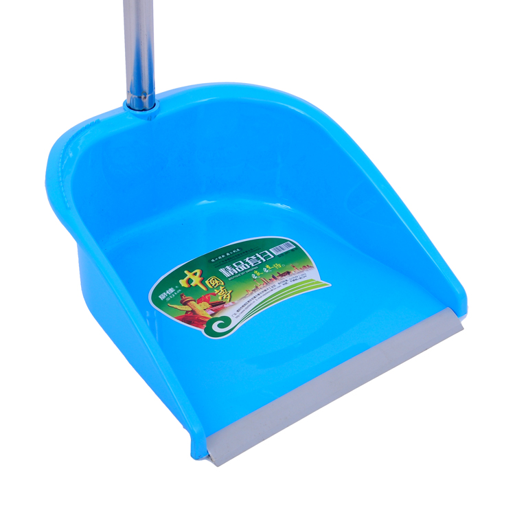 Household large garbage shovel extended stainless steel rod plastic dustpan do not bend over thickened bucket pinch Kei
