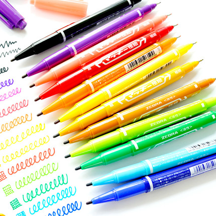 Japan zebra zebra mark pen 12 color small double head color oily note pen fine words