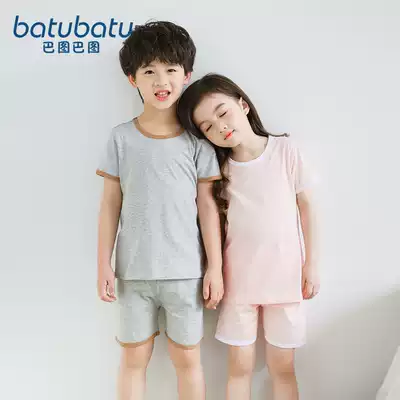 Children's pajamas Girls boys summer boys thin suit pure cotton summer air conditioning clothes Cotton silk home clothes thin