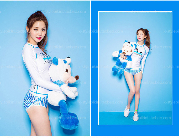 South Korea's new white Mickey print skinny surf long sleeves sunscreen conservative jellyfish suit slim snorkeling suit swimsuit