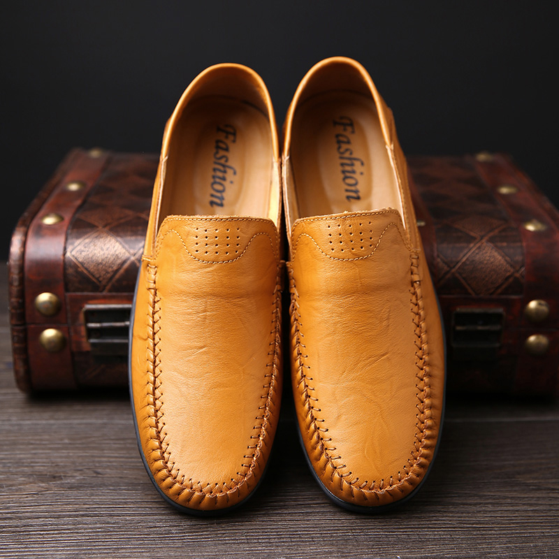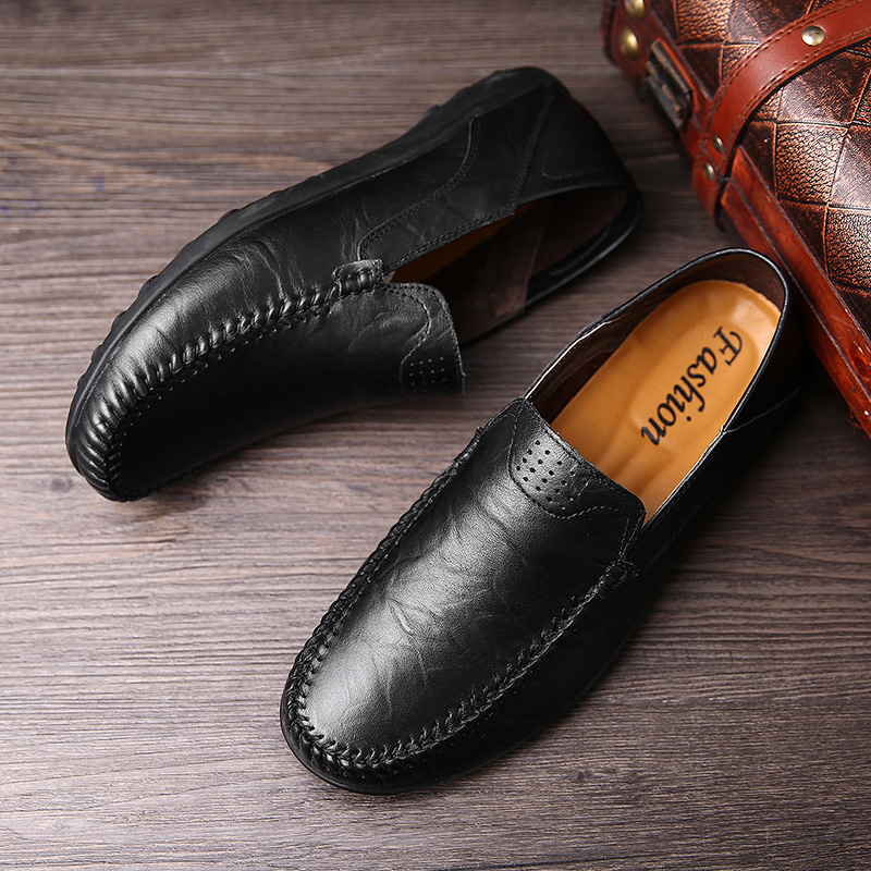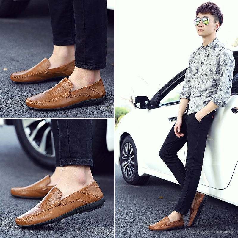 Head skin men bean shoes men and Korean leather skin shoes men and men's small size 46 men's shoes