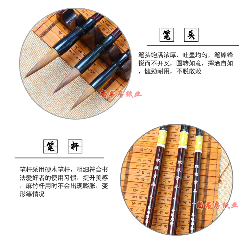 Shanlian Lake Pen Yi Shu Yi painting brush Large, medium and small line Regular script Wolf Brush Huzhou Pen Calligraphy Chinese Painting Four Treasures of Wenfang