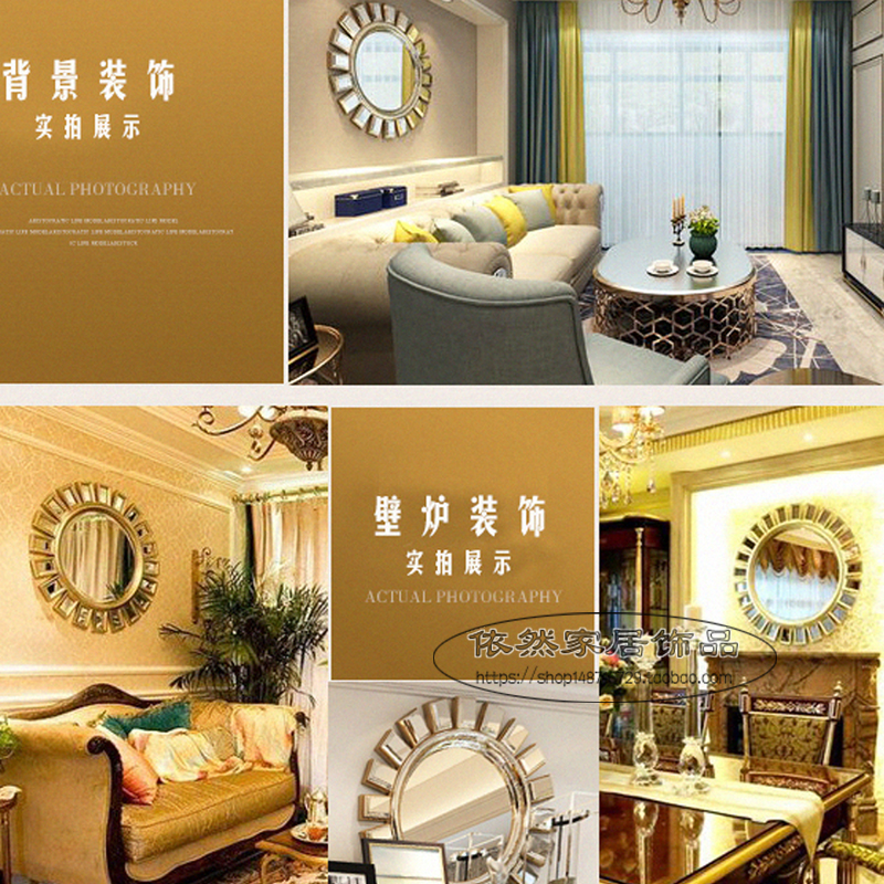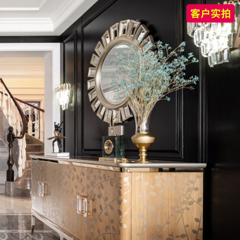 American-style living room European-style porch round light luxury art mirror creative background wall hanging dining edge decorative mirror