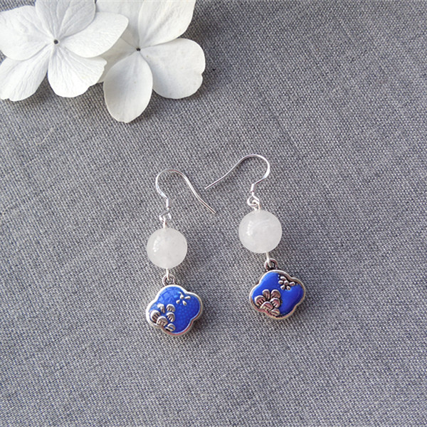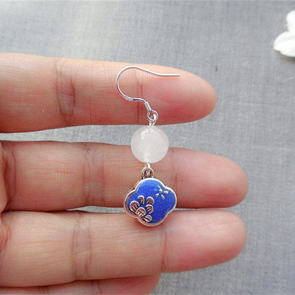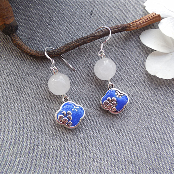 Handmade Original Ethnic Wind Earrings Fashion Earrings China Wind Earrings Classic Temperament Blue White Jade Retro Accessories