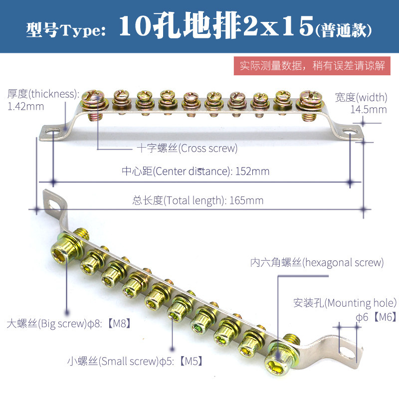 10 ground-row 2mm * 15mm wiring terminal distribution box in 10-hole ground row ground row ground row 2mm * 15mm wiring terminal distribution box zero ground row