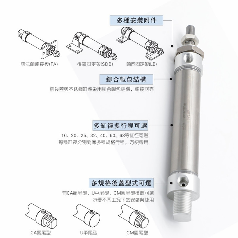 Yad Passenger Stainless Steel Mini Cylinder MA32X25X50X75X100X125X150X200-S-CA U CM