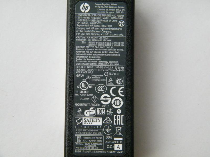 HP HP HP 45w Charger Cable TPN-FA02 Q222 Laptop Power Adapter 19 5V2 3A