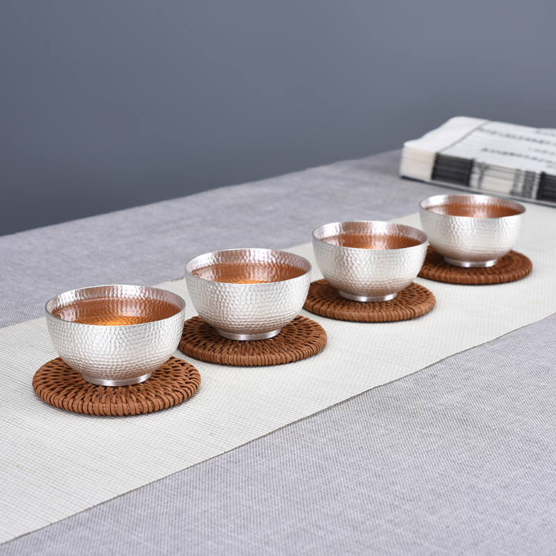 Handmade silver cup 999 sterling silver master teacup High quality hammer pattern medium capacity All-silver Kung Fu small teacup