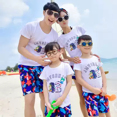 19 Parent-Child Dress A Family of Three Capri pants Short Sleeve T-Shirt Set Beach Large Size Mother, Dame, Mother and Child