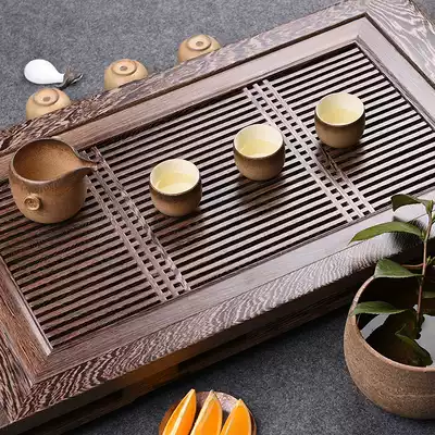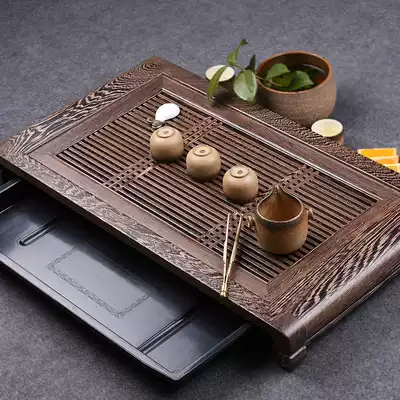 Jinge chicken wing wood tea tray drawer water storage household solid wood large drainage tea sea Kung Fu tea set Tea table tray