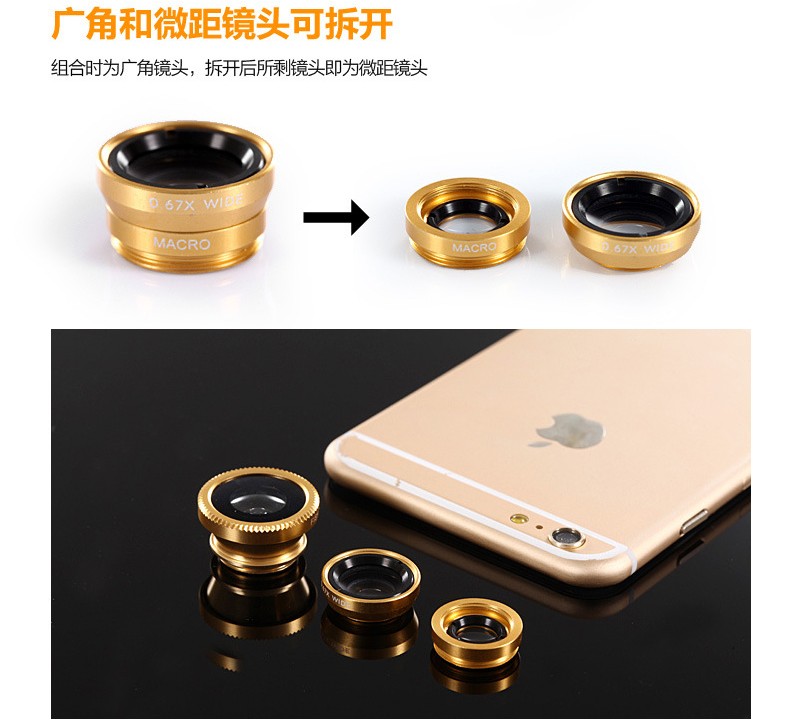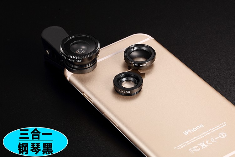 Mobile phone external universal wide angle micro-distance fish eye lens three-in-one single anti-effects self-shooting beauty and beauty camera photo-head