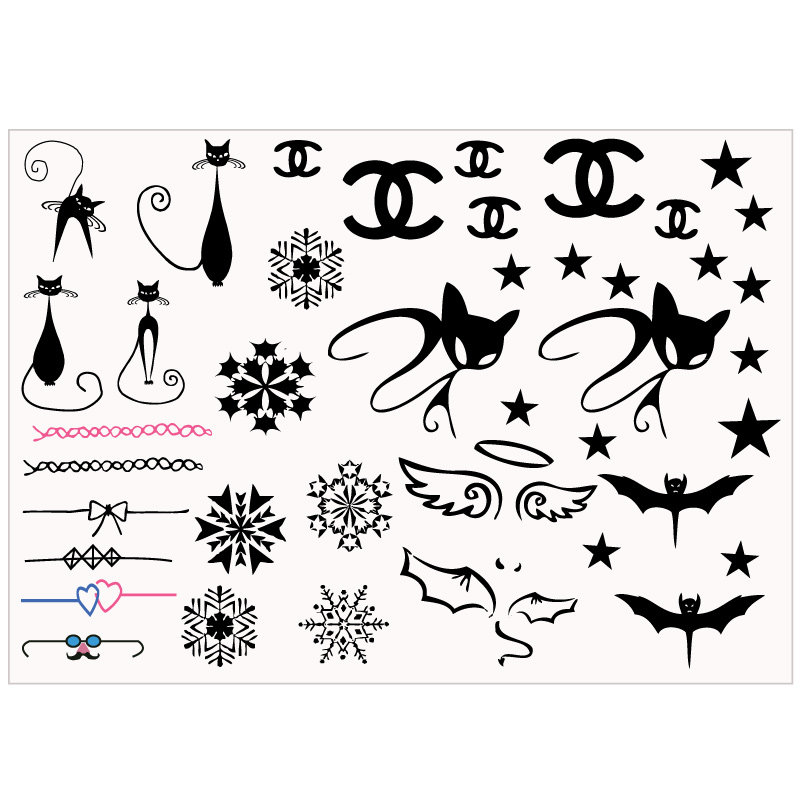 Cute Personality Fox Kitty Snowflake Ring Bat Stars Angel CE Tattoo Sticker Female Waterproof Lasting P105