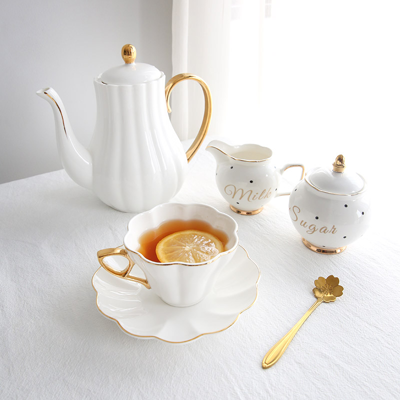 Sketching heat-resistant glass flower teapot Phnom Penh white flower styling coffee cup saucer gold spoon Phnom Penh large teapot 1000ml Phnom Penh milk pot 150ml Phnom Penh sugar pot 200ml Phnom Penh Rose Blossom Café