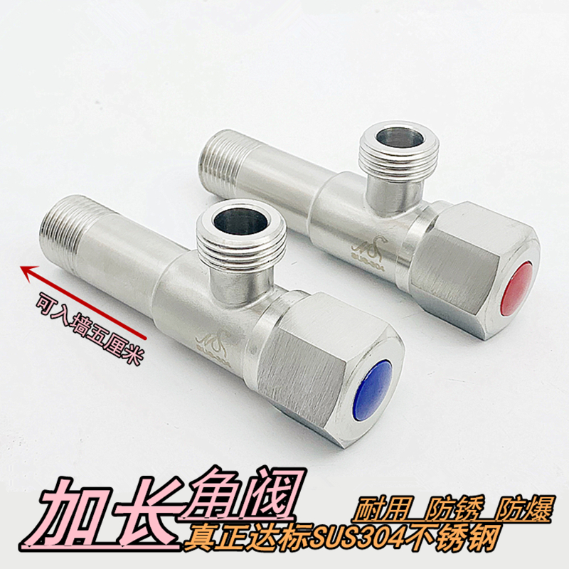 Lengthened angle valve 304 stainless steel triangular valve toilet water heater hexagonal valve 40% hot and cold universal water stop valve